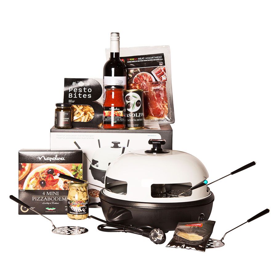 Met het hele gezin mini pizzas bakken in deze pizza-oven, weer eens wat anders dan gourmetten. Je hoeft geen ruzie meer te maken over verschillende smaken pizzas, want je kunt de pizza helemaal naar eigen wens maken met champignons, zwarte olijven en pesto.