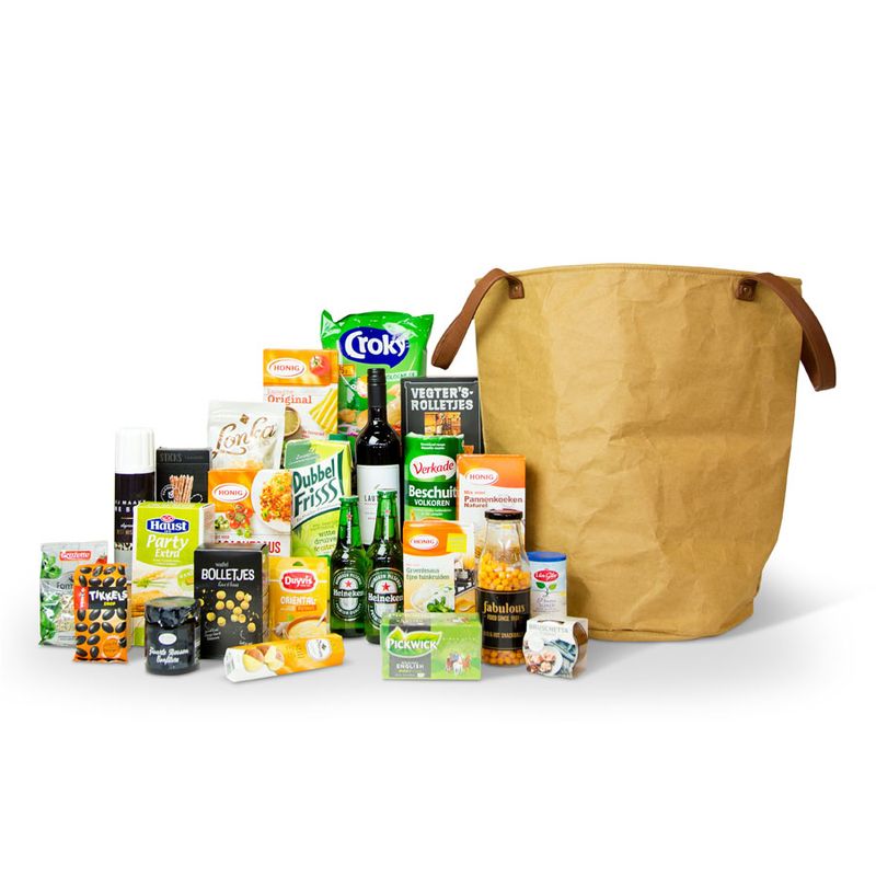 Een kleurig kerstpakket met veel A-merken. Zo mag u dit super gevulde pakket wel noemen. Heerlijke producten die goed van pas zullen komen tijdens de feestdagen. Zowel zoet als hartig, overal is aan gedacht. En de prachtige laundry mand is niet alleen geschikt voor uw wasgoed. U kunt hem ook gebruiken als opbergmand of bloempot.