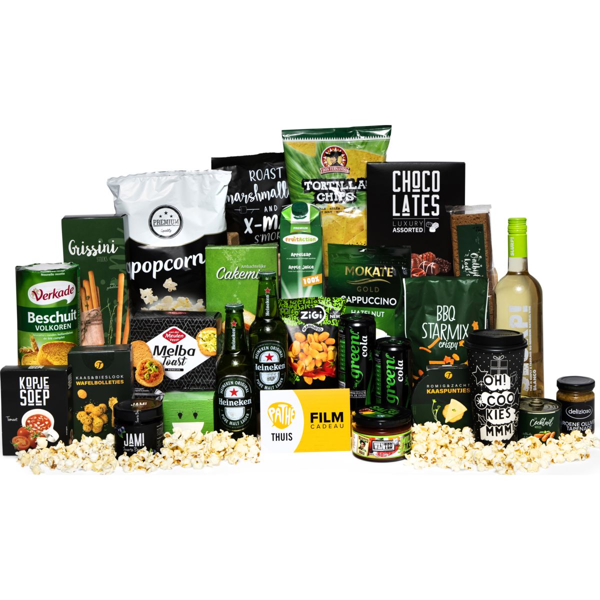 Geniet samen van dit bomvolle kerstpakket en kijk ondertussen naar een leuke film die u zelf kunt uitkiezen met de Pathe thuis film voucher. Dat wordt genieten.