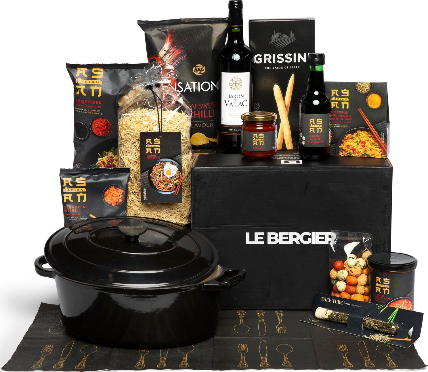 Kom in Oosterse sferen met dit rijk gevulde kerstpakket en geniet van allerlei heerlijke producten. In de Le Bergier braadpan bereid je de allerlekkerste stoofpotten, heerlijk mals vlees en zelfgemaakte sauzen. Je kunt de gietijzeren pan op elke warmtebron gebruiken. Een pan voor het leven en daardoor heel duurzaam. De ontvanger van dit pakket zal zich beslist gewaardeerd voelen.