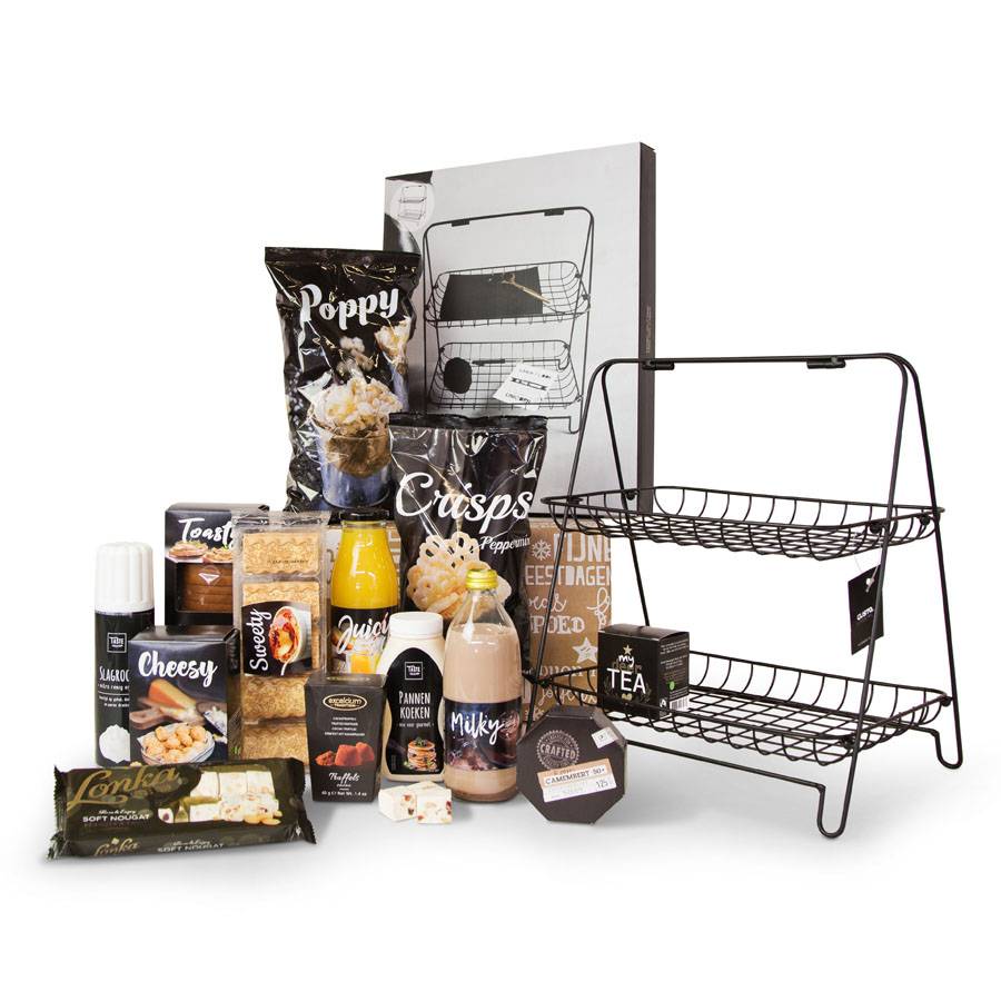 Lekker traditioneel, gezellig samen het kerstpakket uitpakken! Met dit super gevulde kerstpakket komt dat zeker goed. Overal is aan gedacht zowel zoet als hartig, alles is terug te vinden in dit bomvolle kerstpakket! Daarnaast bevat dit pakket een leuk en hip metalen opbergrek. Hierin kunt u van alles opbergen!