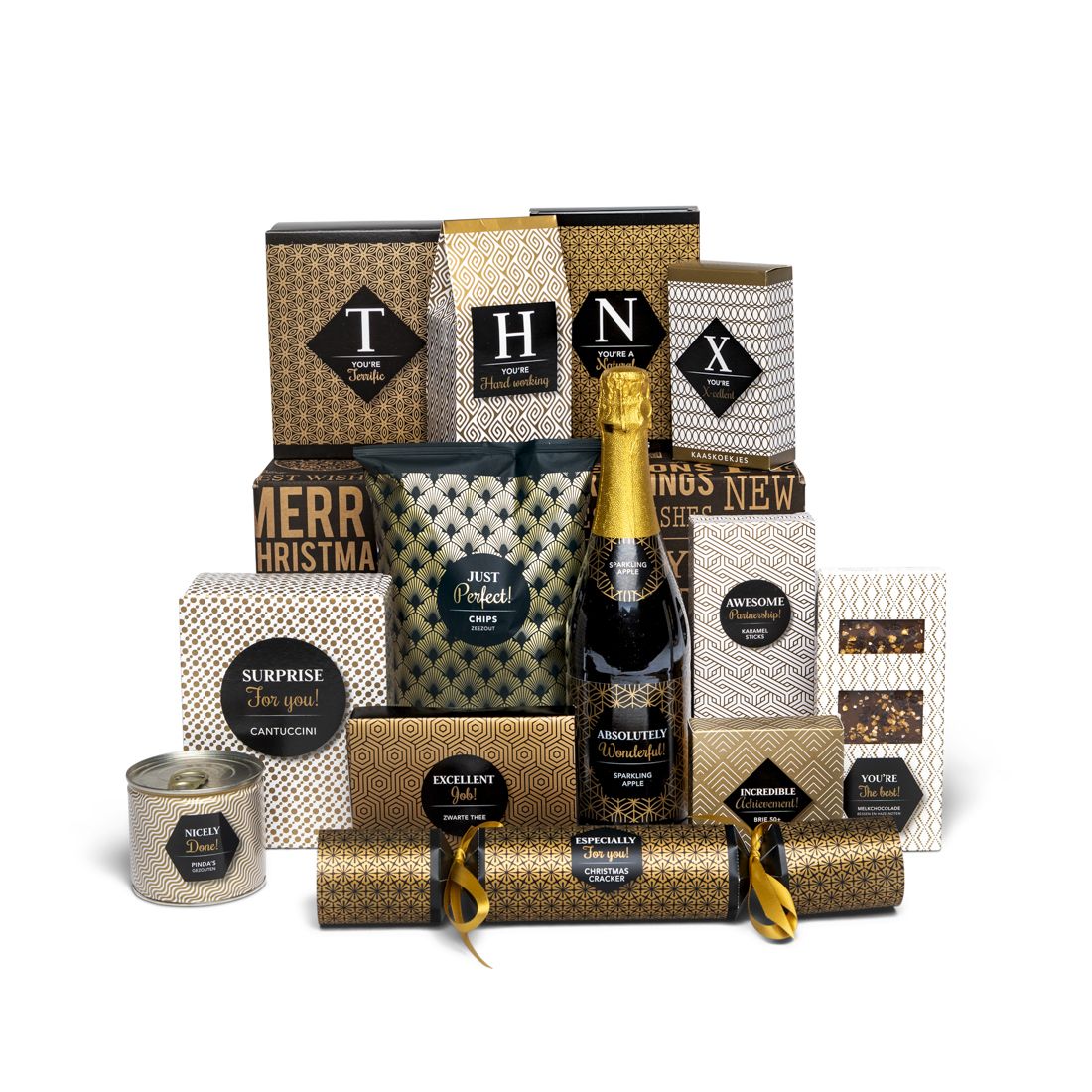 Laat tijdens de feestdagen uw waardering blijken en bedankt uw medewerkers voor hun inzet van het afgelopen jaar met deze chique producten. Dit complimenten pakket is echt een feestje om uit te pakken. De ontvanger zal zich zeker gewaardeerd voelen.