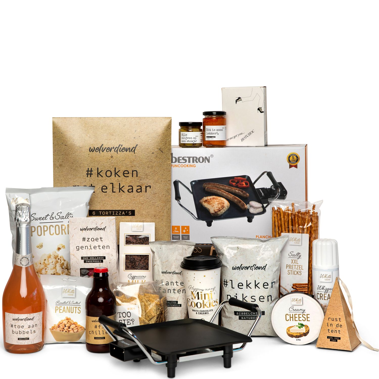 Aan iedereen is gedacht; jong oud, man vrouw. Iedereen wordt blij van dit leuke kerstpakket. De Bestron bakplaat is ideaal om binnen of buiten vlees, vis, groente en aardappels te bakken. De bakplaat heeft een oppervlak van 21 x 21 cm met antiaanbaklaag, waardoor het gebruik van olie of vet niet nodig is. De temperatuur regel je eenvoudig met de afneembare thermostaat die kan worden ingesteld van ongeveer 160 tot 240°C. De bakplaat is eenvoudig te reinigen en is uitgerust met hittebestendige handgrepen en antislipvoetjes. Van dit pakket zal de ontvanger nog lang genieten.
