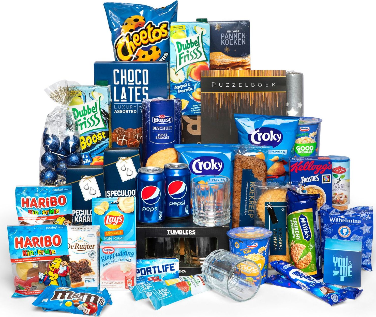 Dit rijk gevulde a-merken kerstpakket is een goede aanvulling op de feestdagen. Van pannenkoekmix tot chocolade, je vindt het allemaal in de bomvolle kerstpakket. De twee fraaie glazen zijn zowel voor warme als koude dranken geschikt. Het puzzelboekis super leuk en leerzaam voor jong en oud.