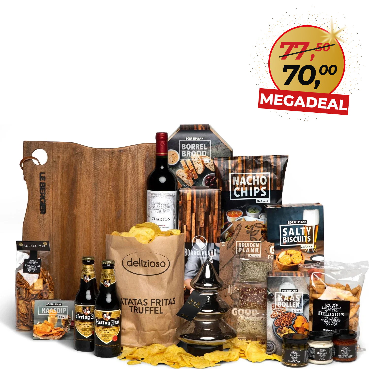 Spreek af met je vrienden voor een gezellige avond. De lekkerste hapjes komen op tafel. Met dit bomvolle borrelpakket ben je verzekerd van een gezellige avond. Serveer de hapjes op de robuuste houten Le Bergier serveerplank. Een eyecatcher op iederetafel en elke keuken en gemaakt van gerecycled hout. De LED kerstboom zorgt tijdens de kerstdagen voor warm sfeerlicht. Dit item is gemaakt van glas waardoor het licht extra mooi schittert. Deze kerstboom is leuk om neer te zetten als decoratiestuk en mag dus niet ontbreken tijdens de gure winterdagen.