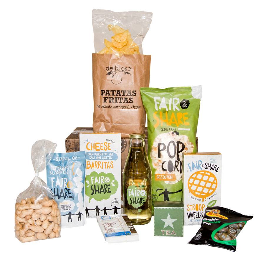 Met dit leuke pakket ondersteunt u het goede doel, want van de opbrengst van de Fair & Share producten uit dit smaakvolle kerstpakket gaat een deel naar de Voedselbank of Stichting Present. Dat wordt samen genieten!