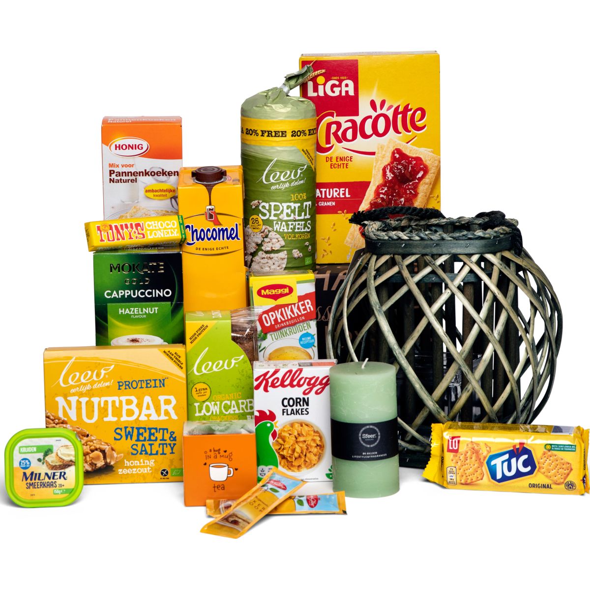 Dit frisse kerstpakket wil iedereen wel ontvangen. Heerlijke producten om tijdens de feestdagen van te genieten. En de stijlvolle, rotan lantaarn, die zowel binnen als buiten te gebruiken is, maken de feestdagen helemaal compleet. Een super cadeau omte ontvangen.