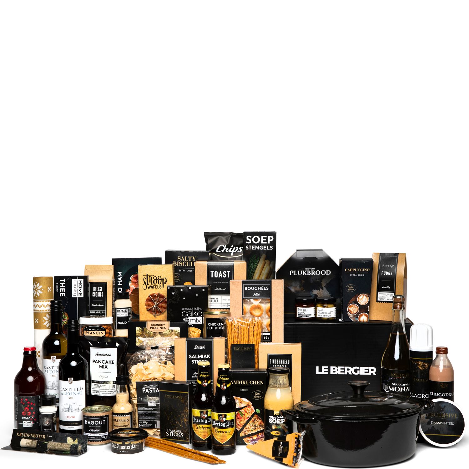 Dit wordt een kerst om nooit te vergeten. Samen met de familie rond de tafel om dit bomvolle kerstpakket uit te pakken. Wat zullen ze verrast zijn. Er komt geen eind aan. De variëteit aan producten valt gegarandeerd in de smaak bij jong en oud. Met dit rijk gevulde kerstpakket kunt u uw waardering laten blijken aan uw medewerkers. In de royale gietijzeren braadpan van Le Bergier bereid je de allerlekkerste stoofpotten, heerlijk mals vlees en zelfgemaakte sauzen. U kunt de pan op elke warmtebrongebruiken. Echt een pan voor het leven.