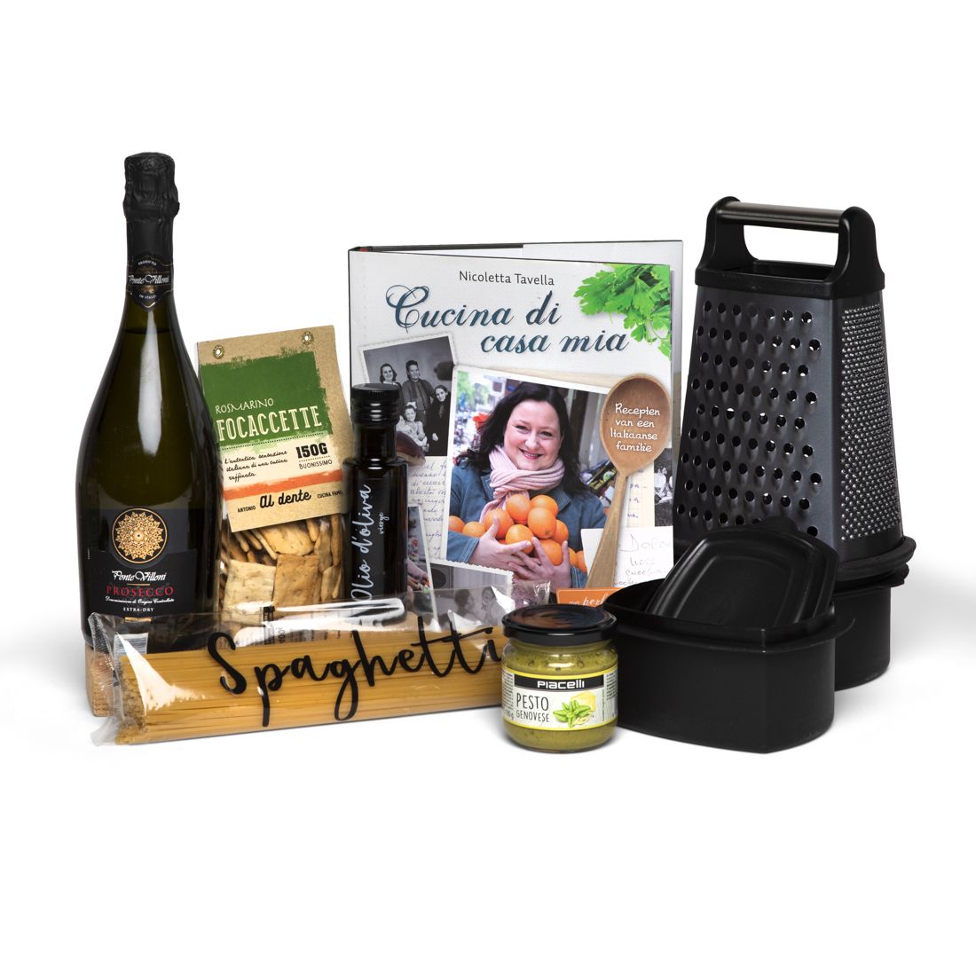 Geniet van dit superleuke Italiaanse kerstpakket. In het grote kookboek vindt u smaakvolle recepten van een Italiaanse familie. De handige rasp heeft een opvangbak met deksel. Dat is superhandig.