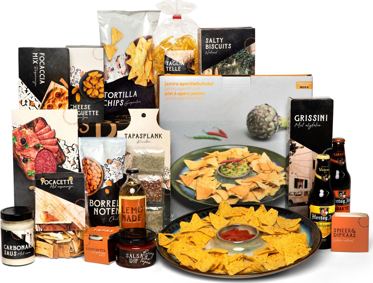 Tapas zijn heerlijke, kleine hapjes om samen van te genieten. Dit bomvolle, culinaire kerstpakket is tot de rand toe gevuld met allerlei kwaliteitsproducten voor een geslaagde avond met vrienden of familie. Op royale serveerschaal kun je heerlijke hapjes serveren.