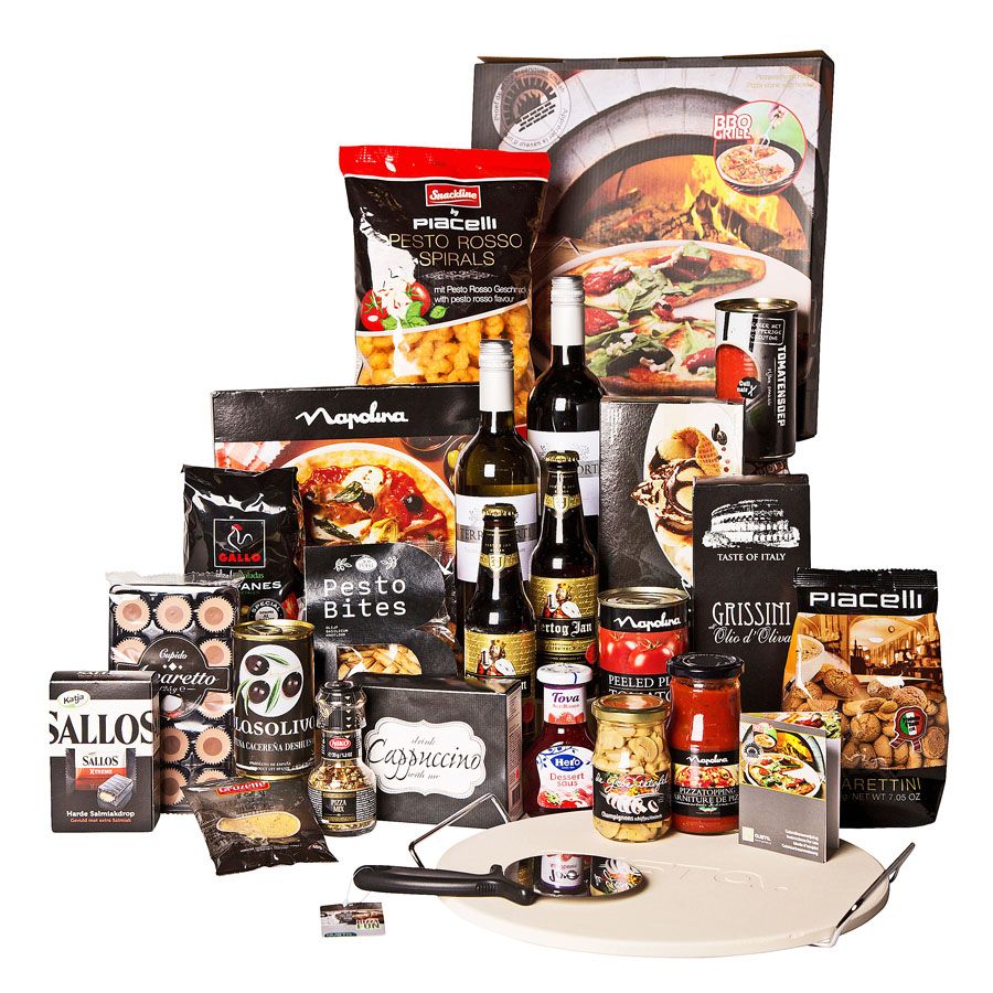 Een ideaal kerstpakket voor klein en groot. Samen genieten van heerlijke zelfgebakken pizzas op een echte baksteen voor een echt authentieke Italiaanse smaak. De baksteen is voorzien van een houder, dus u kunt de pizza direct serveren en aansnijden met de pizzasnijder. Daarnaast bevat dit smaakvolle pakket nog veel meer Italiaanse lekkernijen. Wat dacht u van een zalige cappuccino met een Italiaans koekje en chocolaatje, een kruidige soep, lekkere pasta of een goed glas wijn met heerlijke Italiaanse snacks. Buen appetito!