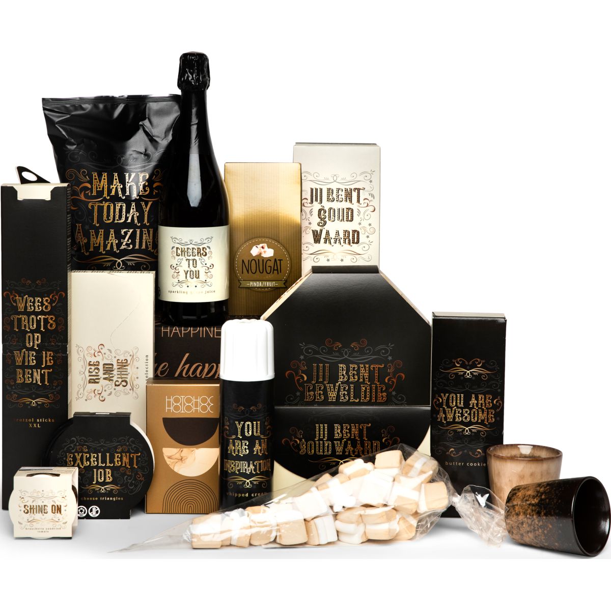 Dit pakket bevat de mooiste en leukste complimenten om te geven en te ontvangen, verpakt in een stijlvol, warm en chique ontwerp. Elk product is een cadeautje. Daarmee voelt de ontvanger zich extra gewaardeerd. De prachtige mokken zijn voor zowel koude als hete dranken geschikt. De mokken zijn gemaakt van keramiek en afgewerkt met een harde, gekleurde glazuurlaag.