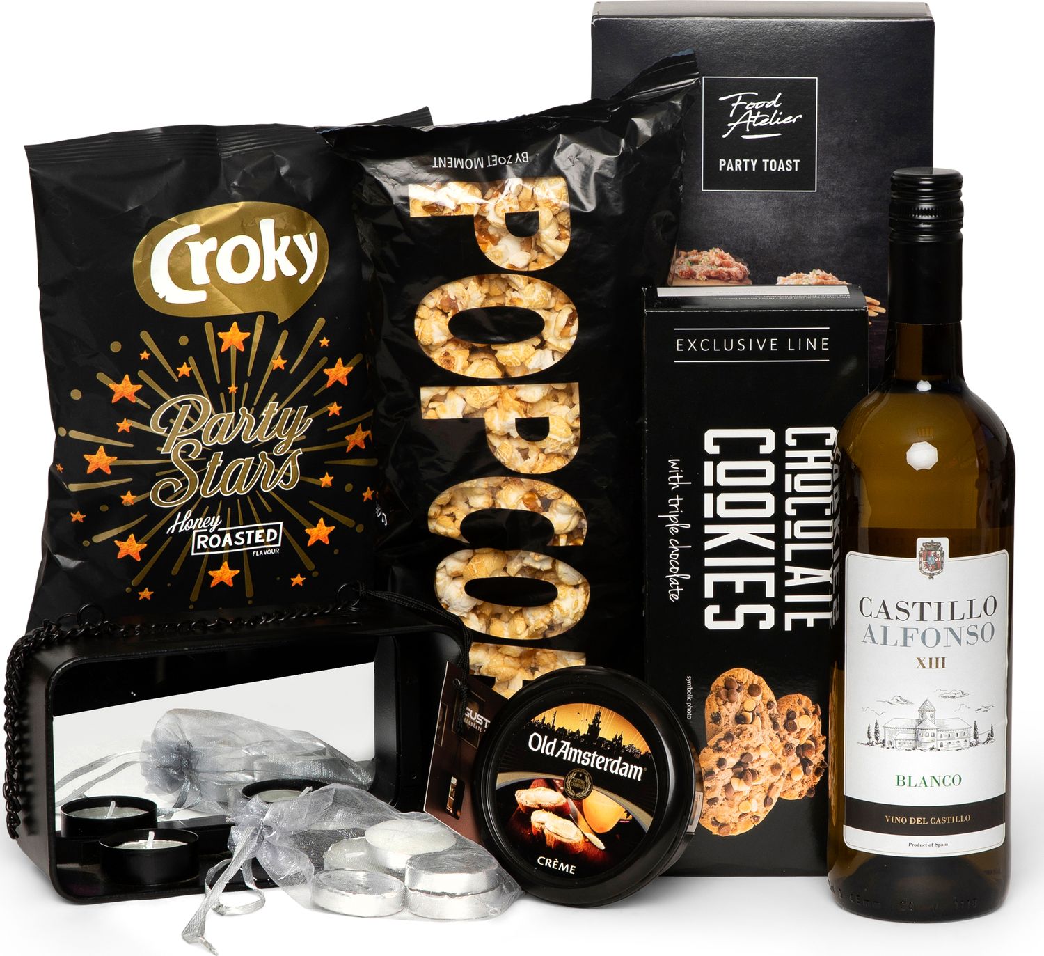 Dit kerstpakket garandeert een gezellige avond met vrienden of familie. Wij hebben de doos tot de rand gevuld met lekkere hartige artikelen. Deze zwart metalen wand theelichthouder met spiegeltje en ophangkoortje is een echte eyecatcher en geeft extra sfeer tijdens en na de feestdagen.