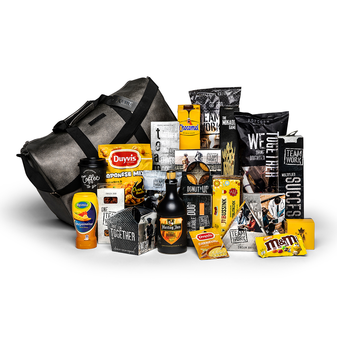 Met elkaar aan de slag als team. Samen werkt het namelijk veel beter. Teamwork staat hier centraal. Inspirerende en motiverende teksten staan stevig op de verpakking. U ziet teamwork in diverse werkbranches voorbij komen. Op die manier kan iedereen zich met dit pakket identificeren. Een stoer pakket voor echte teamplayers. En de prachtige weekendtas en het leuke mikado spel komen altijd goed van pas.