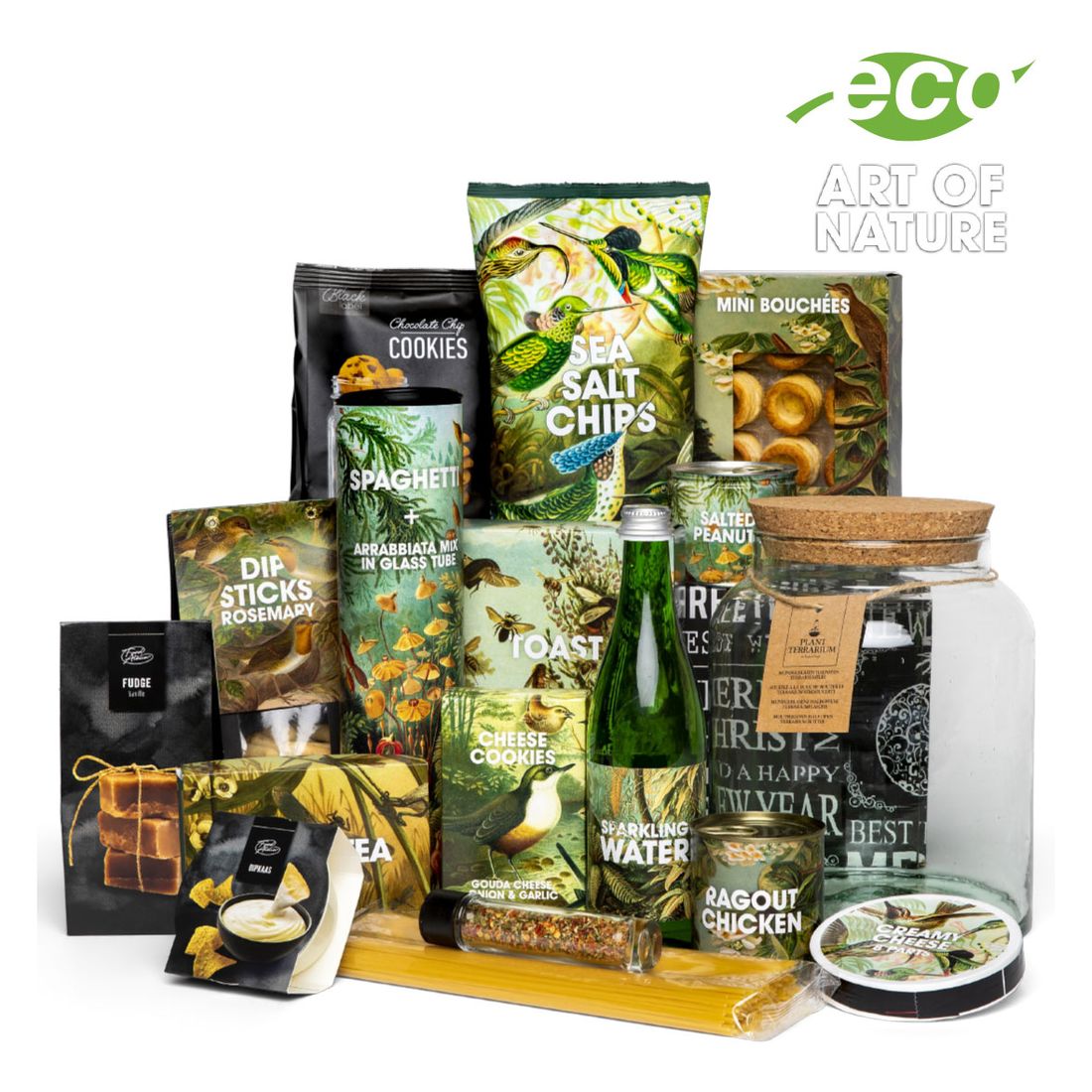 Dit prachtige groene pakket met terrarium van gerecycled glas is op en top botanisch. De liefde voor de natuur spat ervan af! Deze verpakkingen zijn zó mooi, dat het bijna zonde is om ze bij het afval te doen. U hoeft het milieu er ook niet mee te belasten, want met behulp van inspirerende upcycle tips kunt u de verpakkingen eenvoudig een tweede leven geven als bijvoorbeeld een vaasje, passe-partout, windlicht of servetring.