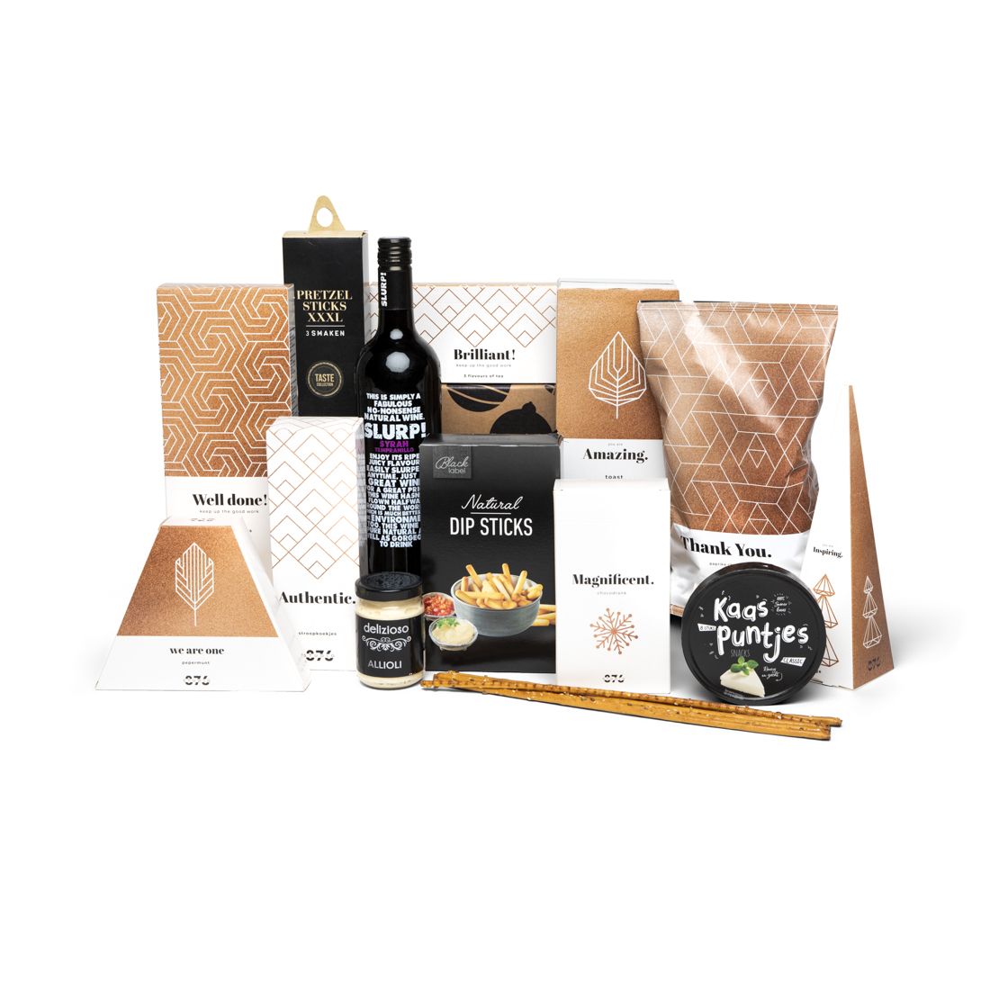 Thank you! De manier om uw medewerkers te bedanken voor het afgelopen jaar. Dit kerstpakket zit vol met bedankjes! Geniet van de feestdagen!