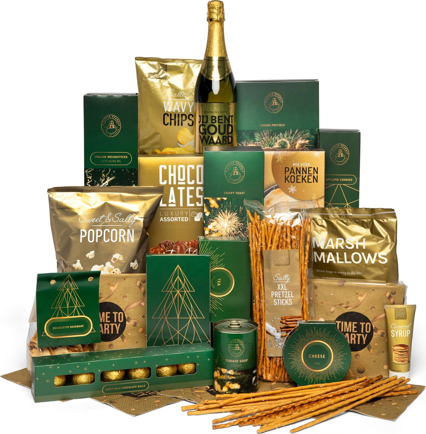 Maak van de feestdagen een knallend feest. Dit pakket is gevuld met lekkernijen en gouden en glinsterende items voor onvergetelijke feestdagen. Met dit pakket kom je niets te kort.