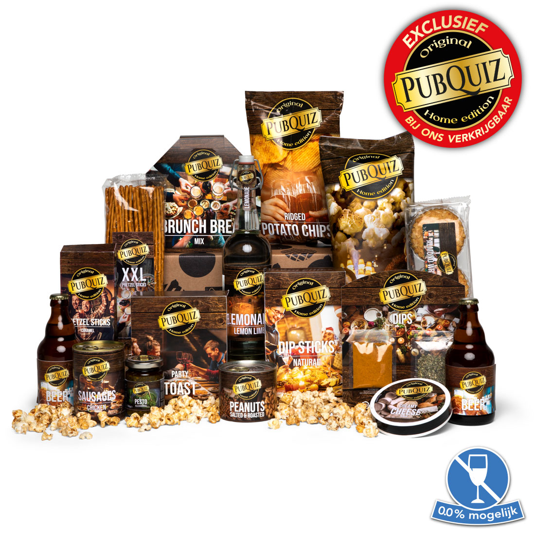 Met dit rijk gevulde PubQuiz kerstpakket beleeft u een topavond. Wij hebben de doos tot de rand toe gevuld met uitsluitend heerlijke hapjes en drankjes voor een gezellige avond met vrienden of familie.