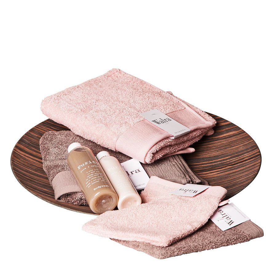 Dit pakket zorgt ervoor dat je je volledig kunt ontspannen met heerlijk geurende bodywash en bijpassende bodylotion. Voor haar een zacht roze washandje en handdoek en voor hem deze doucheset in taupe (zacht bruin). Eveneens zit er een schaal bij die zeker niet misstaat in de badkamer en waar je allerlei spullen in kunt bewaren.