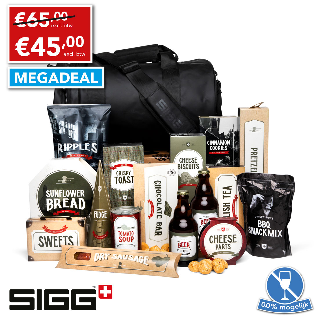 Wauw, wat een fijne tas van Sigg, geschikt voor reisjes, sporten etc. Ook aan lekker eten is gedacht, heerlijke producten in de themalijn Vakmanschap zorgen voor een goed gevuld en vooral ook compleet kerstpakket. Fijne feestdagen!