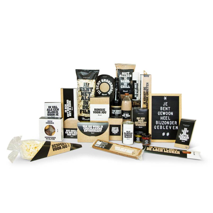 Een leuk pakket, overval leuke verpakkingen en lekkere hapjes. Ga met z?n allen eens zitten of jullie ook van die leuke woordspelingen kunnen bedenken!
