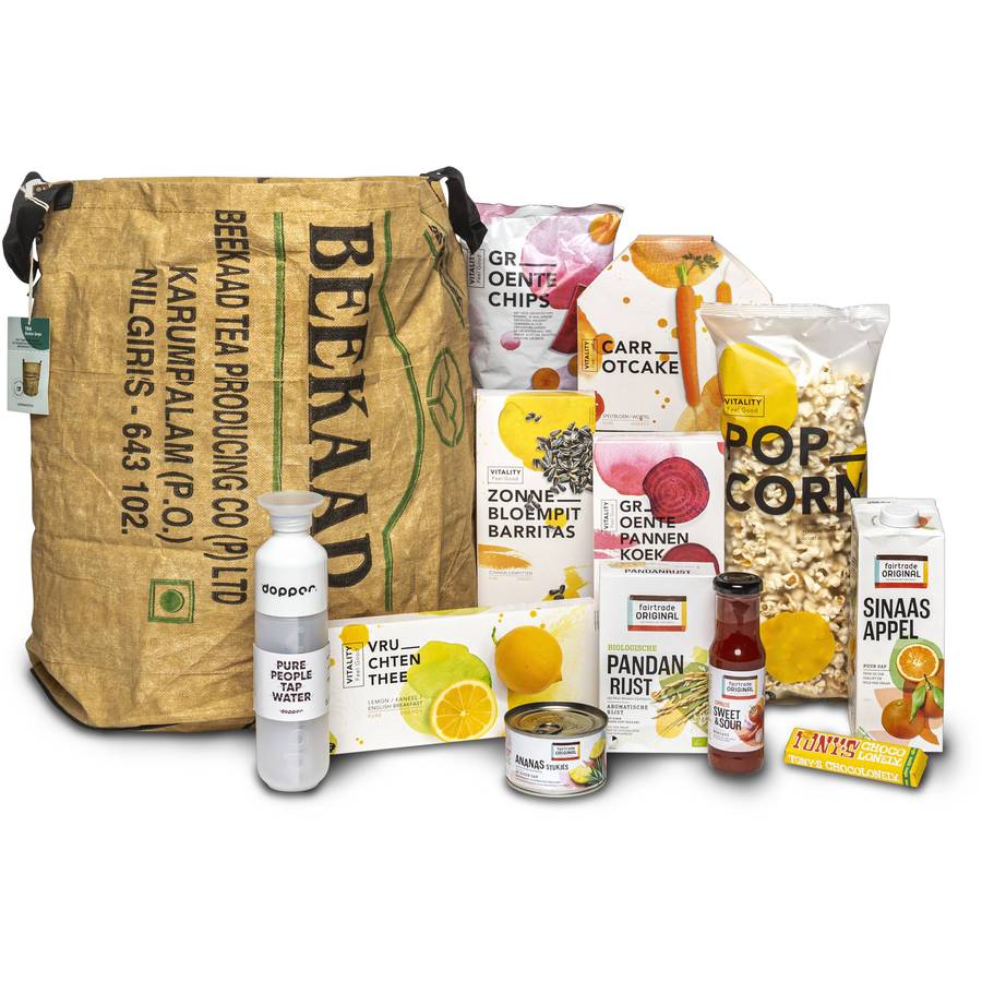 Lekker, fris, gezond en heel Fair, dat is waar dit kerstpakket voor staat. Naast allemaal verantwoorde producten bevat dit pakket een duurzame Dopper drinkfles. Dopper streeft naar een wereld waar mensen zich bewust zijn van het milieu, waar de hoeveelheid single-use plastic afval actief wordt verminderd en waar iedereen toegang heeft tot veilig drinkwater.