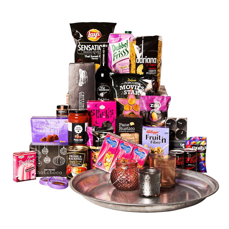 Maak er een groot feest van tijdens de kerstdagen, nodig de hele familie uit en laat iedereen genieten van dit pakket boordevol heerlijke hapjes, drankjes en een modern decoratie plateau met theelichthouders. We wish you a merry christmas!