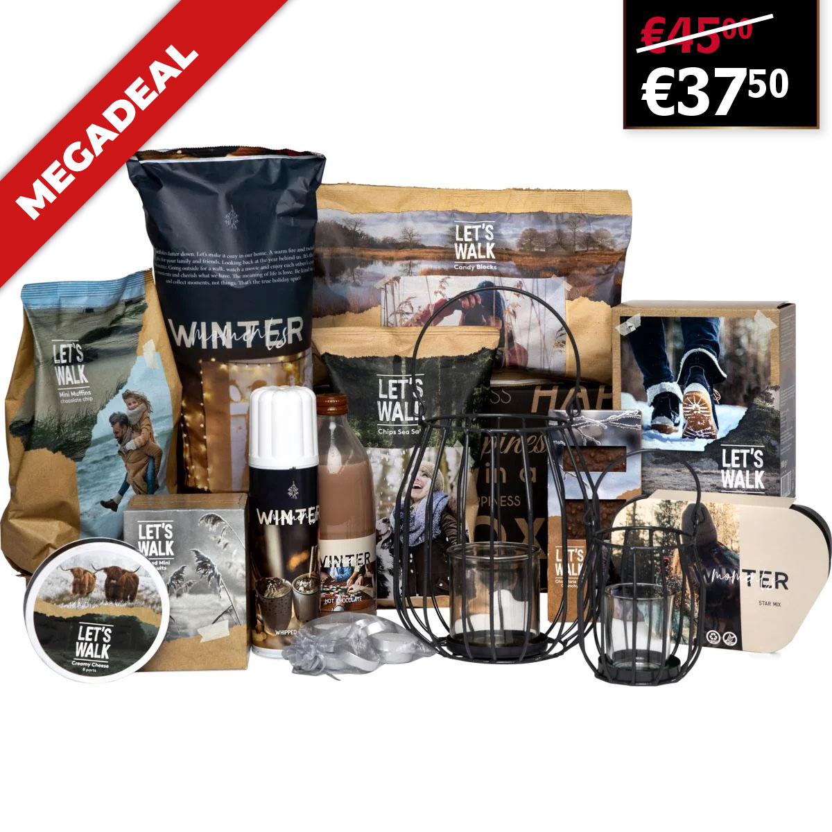 Prachtige winterse natuur met roodborstjes op een tak, pluimen van pampasgras en bevroren bessen. Mensen die genieten tijdens een heerlijke winterwandeling. Sportief met een lach, dat is waar het in dit pakket om draait. Met een beetje geluk ligt ersneeuw en kan je genieten van een wit uitzicht. Verder is het sprookjesachtig stil en hoor je alleen de sneeuw knisperen onder je schoenen. Dus haal die frisse neus en rode wangen. Het is altijd wandelweer. En voor wat extra sfeer en warmte hebben wetwee prachtige lantaarns toegevoegd