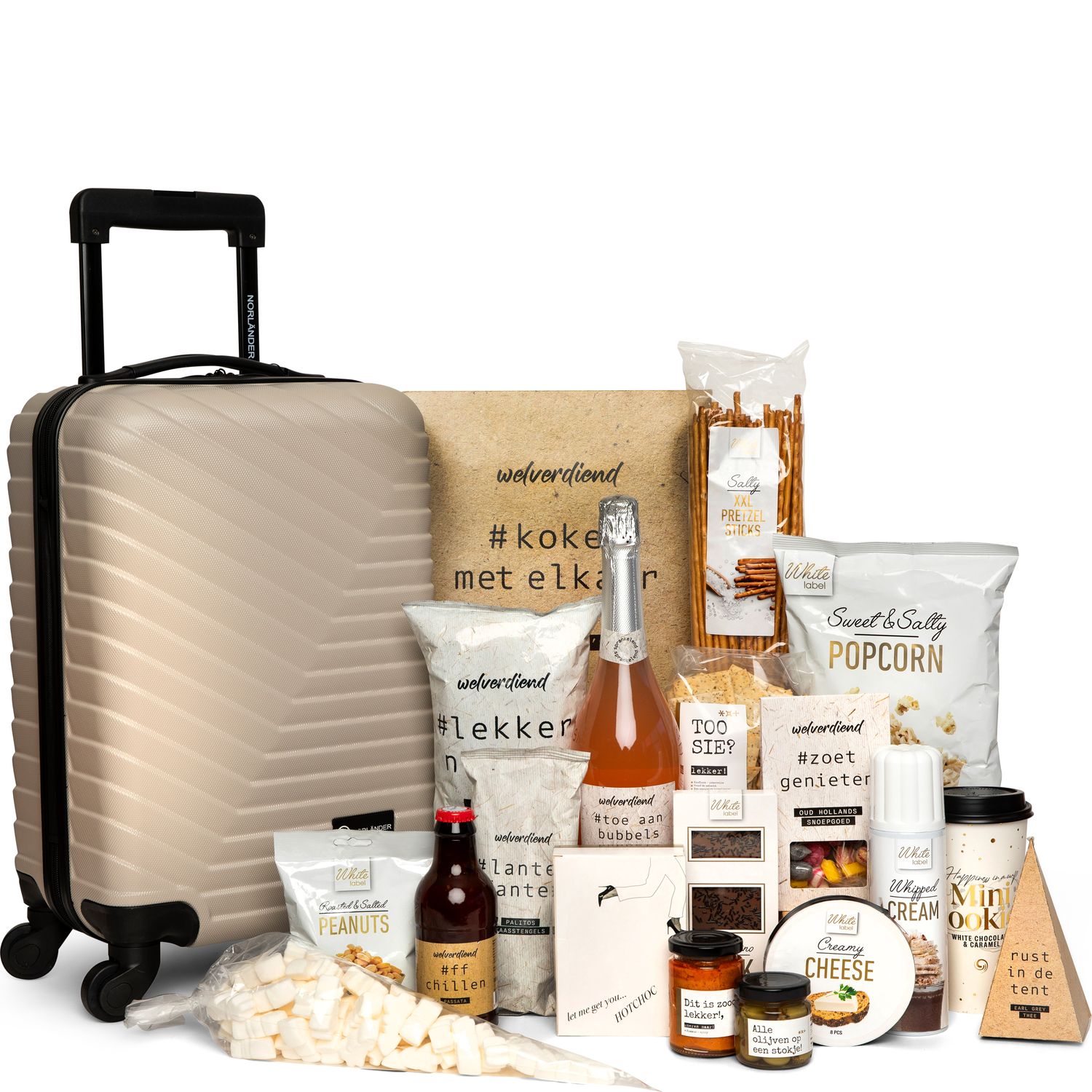 Verras uw medewerkers met dit Welverdiende luxe kerstpakket. De avontuurlijke Norländer trolley valt op door het chique design. De trolley is samengesteld conform de IATA richtlijnen en mag bij alle IATA aangesloten luchtvaartmaatschappijen mee als handbagage. Door de vier enkele wieltjes die 360 graden draaien, rol je de trolley eenvoudig naar de eindbestemming. Daarnaast is er ook een uitschuifbare trolleystang en extra handgreep aan de bovenzijde aanwezig. De binnenzijde is voorzien van een gevoerd interieur en opgedeeld in een hoofd- en ritsvak compartiment. In het hoofdcompartiment zijn dubbele buckle riemen aangebracht om kleding in positie te houden tijdens de reis. Het rits compartiment biedt ruimte om kleinere producten te vervoeren en op hun plaats te houden.