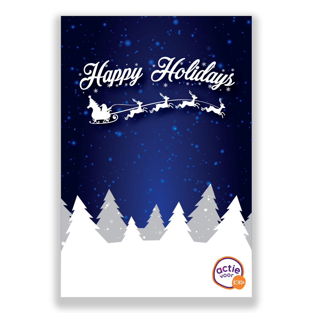 Voeg een kerstkaart toe aan het kerstpakket met daarop een persoonlijke boodschap. Bij elke verkochte kaart gaat er 1 euro naar KiKa, een goed doel dat zich inzet voor kinderen met kanker. Iedere kerstkaart kan worden voorzien van een eigen tekst, dit is bij de prijs inbegrepen. Onze kerstkaarten zijn voorzien van een vrolijk kerst printje met diverse thema's, gedrukt op hoogwaardig karton. Met deze kaarten geeft u niet alleen een persoonlijk tintje aan uw kerstwensen, maar steunt u ook een goed doel.