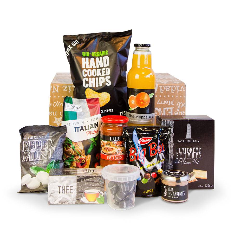 Smaakvol kerstpakket boordevol heerlijke artikelen. Heerlijke pizza als avondmaal. En dat is nog niet alles! Neem gerust de tijd met het uitpakken van deze kersttopper. Lekker smullen!