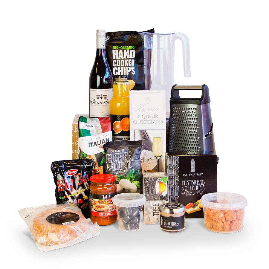 Smaakvol kerstpakket boordevol heerlijke artikelen. Heerlijke pizza als avondmaal. En dat is nog niet alles! Neem gerust de tijd met het uitpakken van deze kersttopper. Lekker smullen!