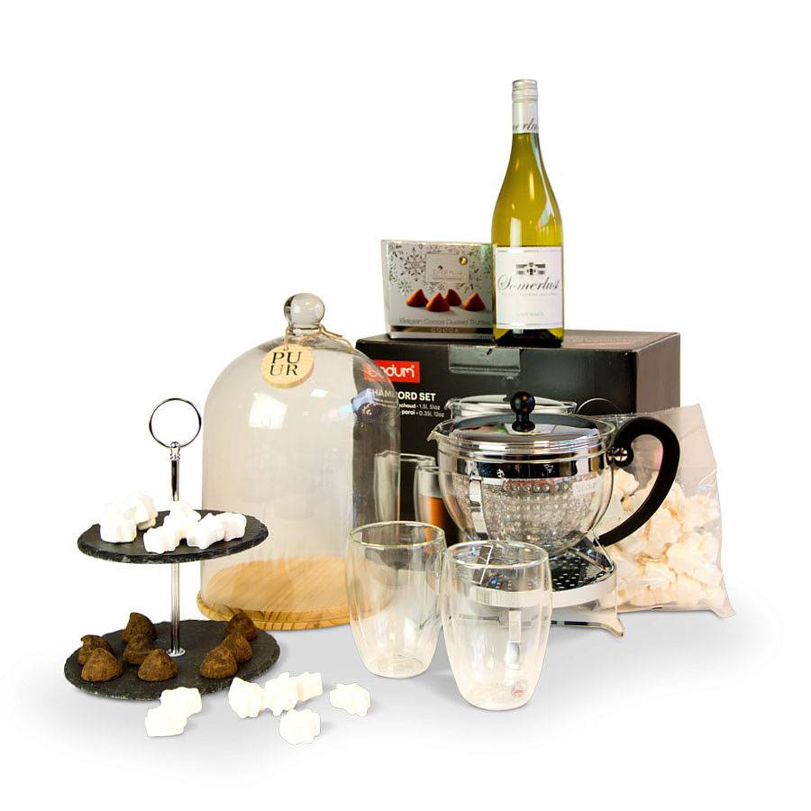 Van dit pakket wordt iedereen blij, want het bevat een prachtige Bodum theeset. De theepot is doorzichtig en daarom erg handig. De theepot heeft een inhoud van 1,5 liter en is geschikt voor ongeveer 12 kopjes thee. Bij de theepot worden 2 dubbelwandige theeglazen en een rechaud geleverd, zodat uw thee langer warm blijft. De theepot is voorzien van een kunststof theefilter, hierdoor maakt u gemakkelijk en snel thee van losse theebladeren, losse thee of kruiden, zonder dat deze in het hete water terecht komen. Van dit pakket zal de ontvanger nog heel lang genieten.