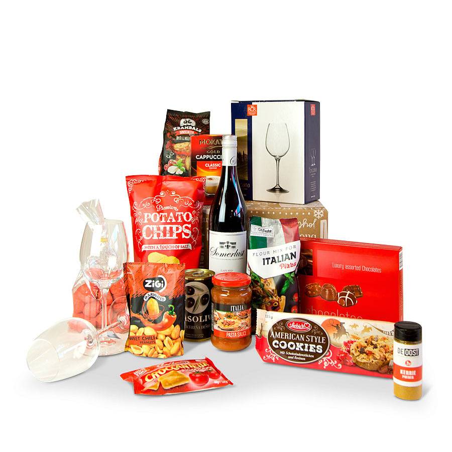 Smaakvol kerstpakket boordevol heerlijke artikelen. Heerlijke pasta voor het hele gezin als avondmaal. En dat is nog niet alles! Neem gerust de tijd met het uitpakken van deze kersttopper. Lekker smullen!