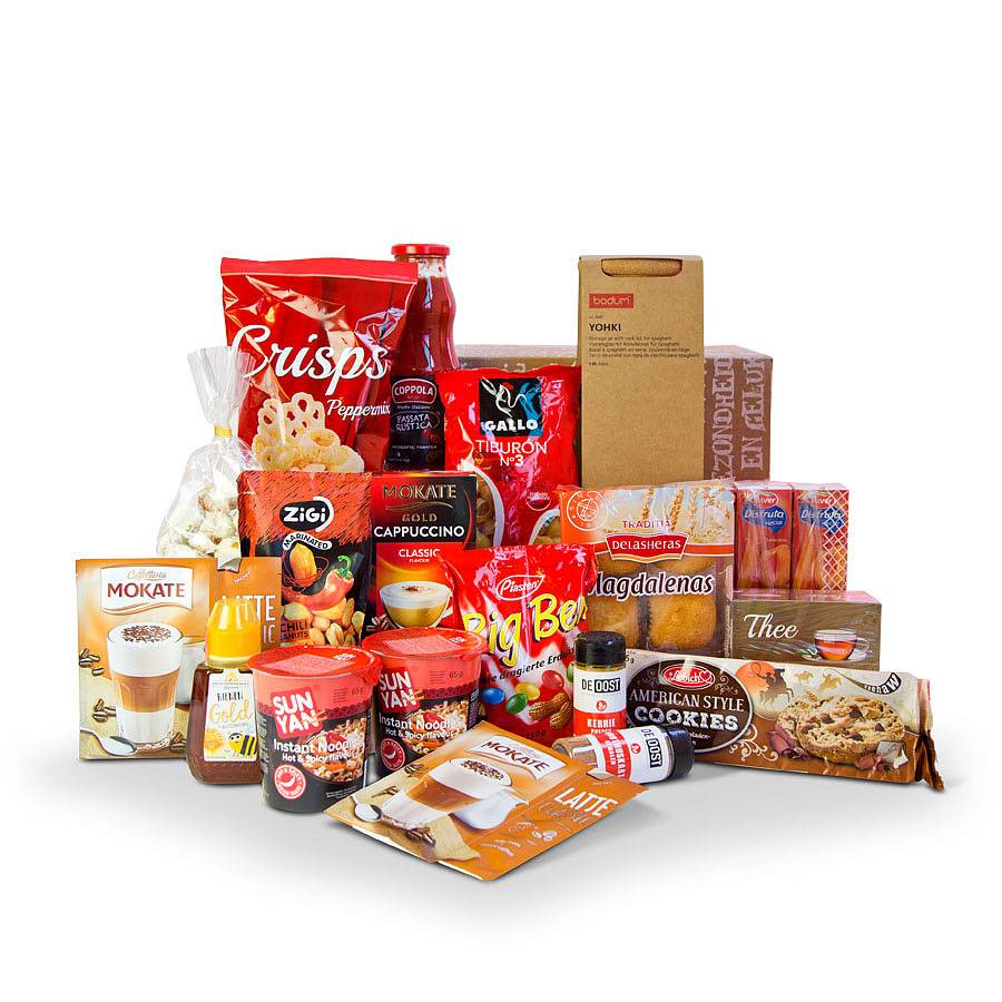 Van ontbijt tot diner van lekkere snacks voor overdag en 's avonds, alles is terug te vinden in het sfeervolle kerstpakket.
